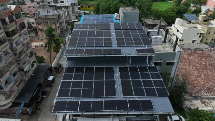 Hospitals operate 24/7, making uninterrupted power supply critical. A solar rooftop system provides multiple advantages: